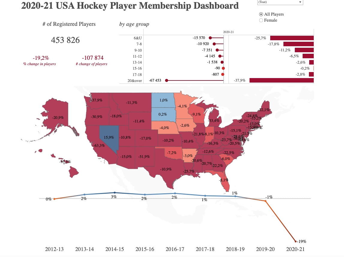 Un chiffre remarquable d'autant plus que la pandémie a signé un sacré coup d'arrêt à la pratique de notre sport aux Etats-Unis comme ailleurs, à voir dans le second tableau.