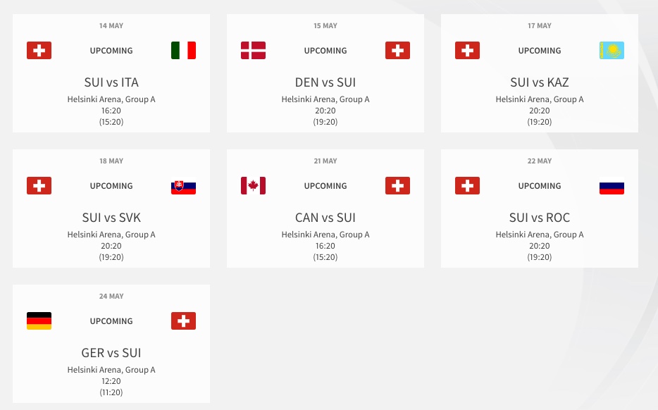 La Suisse entamera ses prochains Mondiaux face à l'Italie 18/08/2021 Follow SwissHabs Derniers articles Il y a une heure Alina Mueller participe à la fête offensive de Boston Il y a 2 heures Les autres faits à retenir de cette nuit de NHL et de celle à venir Il y a 4 heures La Suède a vécu son match de championnat le plus long Il y a 5 heures Play-off de NHL : les Stars feront face au Wild Il y a 5 heures Les Devils ne prendront pas part aux play-offs de NHL