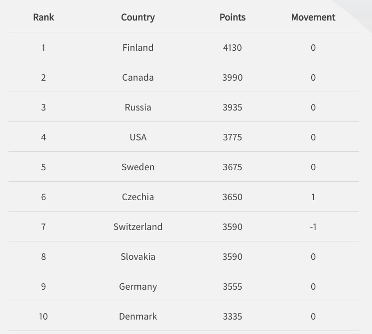 La Suisse perd un rang au classement mondial de l'IIHF 30/05/2022 Follow SwissHabs Derniers articles Il y a 7 heures Les plus beaux buts de la dernière semaine de NHL Il y a 9 heures Matej Stransky est le MVP de la saison régulière Il y a 10 heures 50 matchs joués, 50 défaites Il y a 11 heures Le programme de préparation de la Suisse en vue des Mondiaux Il y a 12 heures Triple prolongation au SC Langenthal