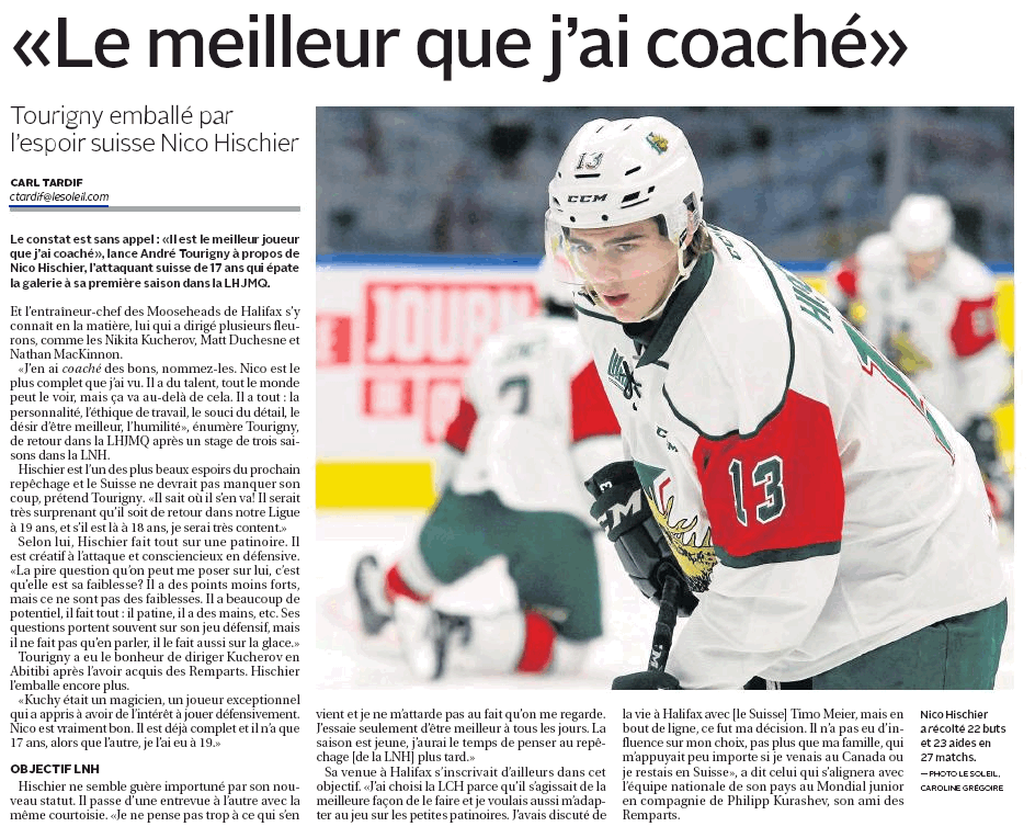 Le coach de Nico Hischier le juge meilleur que des Kucherov, Duchesne ou MacKinnon.