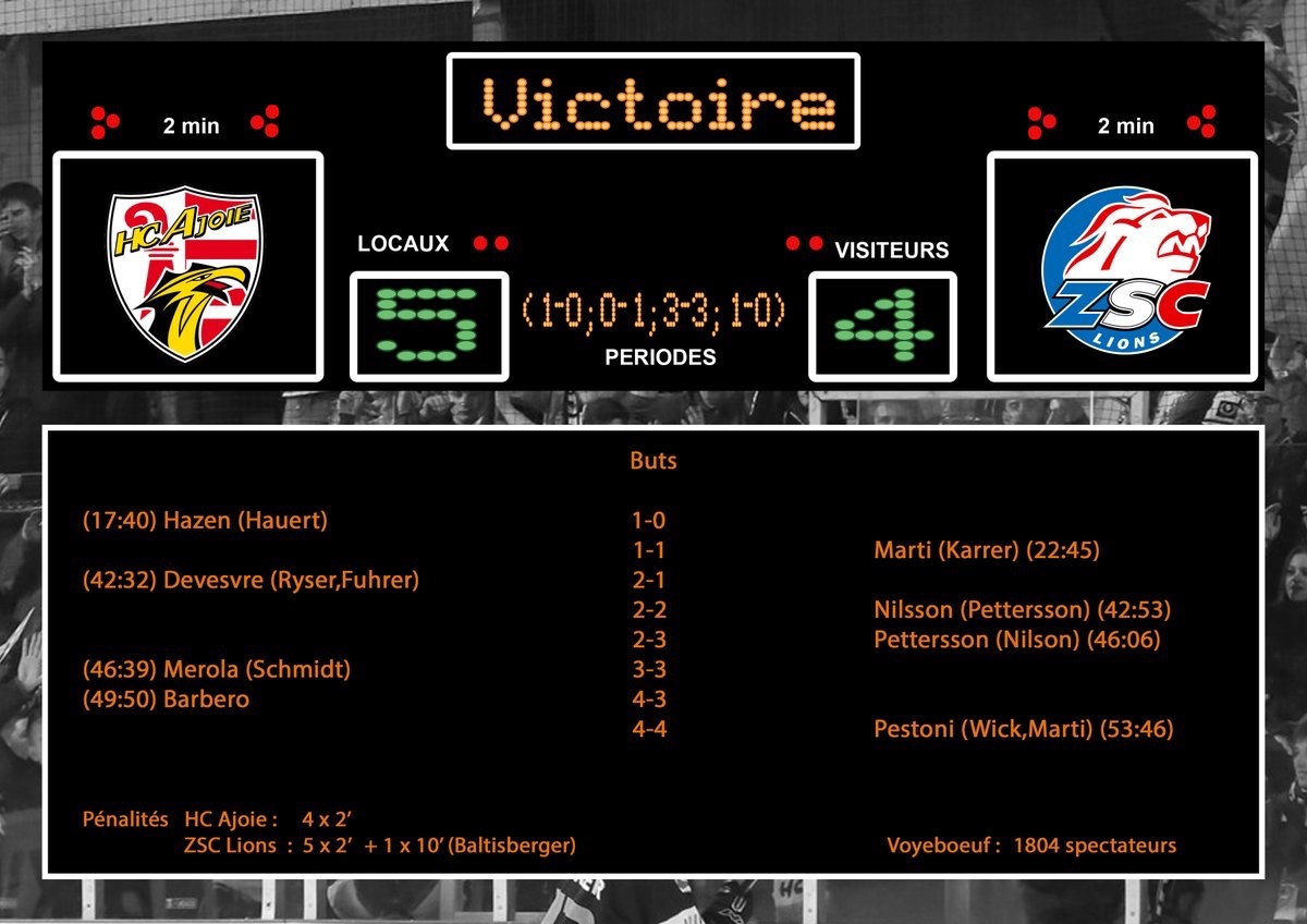Les deux équipes se sont départagées aux tirs au but et les Ajoulots se sont montrés les plus habiles à ce jeu, victoire 5-4 et passent donc en quarts de finale.