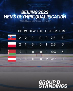 Si le Belarus bat la Slovaquie dans le temps réglementaire mais pas la Pologne contre l'Autriche, le Belarus se qualifiera pour Pékin 2022.