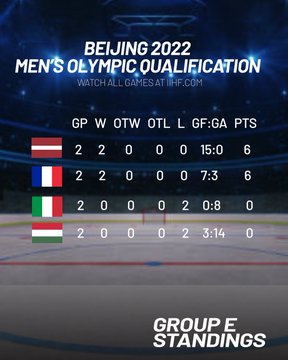 À Riga, le pays hôte, la Lettonie, mène le classement avec deux victoires et un impressionnant bilan de 15-0, tandis que la France est également invaincue avec 7-3. Les deux pays s'affronteront dans un match à enjeu. Même si la Lettonie fait figure de favori sur le papier, les Lettons seront prudents avec ce rôle, ayant perdu le dernier tournoi de qualification olympique à l'Arena Riga contre un autre adversaire de l'ouest, l'Allemagne, qui a finalement été médaillée d'argent olympique à PyeongChang 2018.