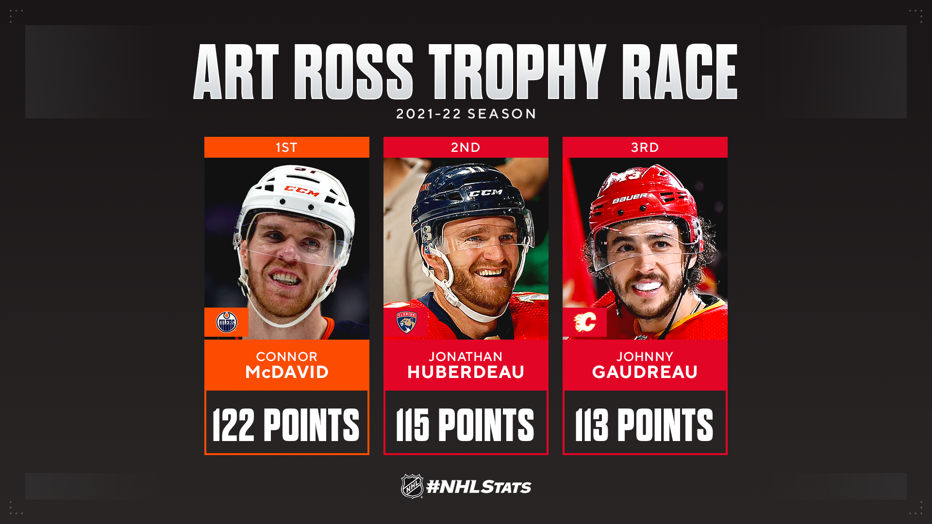 Connor McDavid (1-3-4) a enregistré son 22e match de quatre points en carrière pour porter son total en saison à 44-78-122 (79 GP) et devancer de sept points le joueur de la Floride Jonathan Huberdeau (30-85-115) dans la course au trophée Art Ross 2021-22 de la LNH.