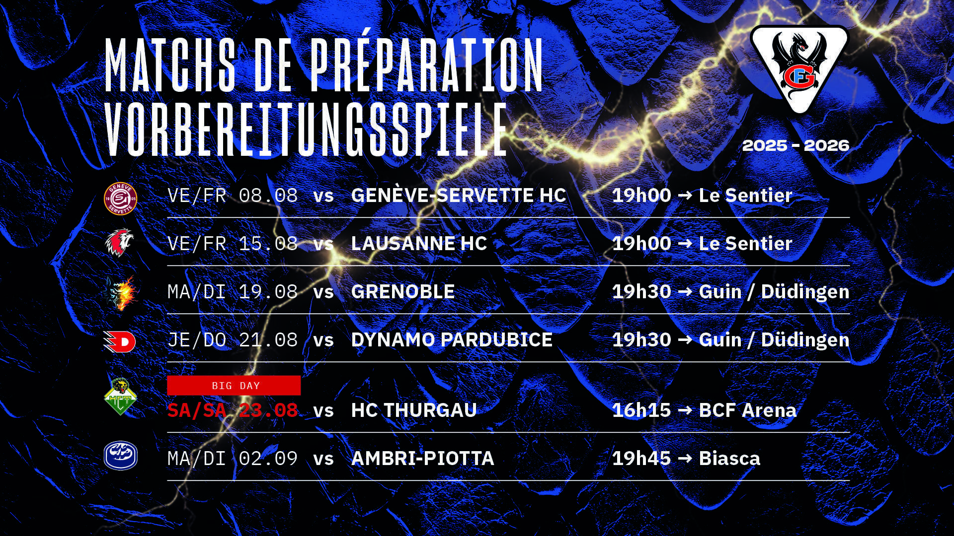 Le programme de préparation de Fribourg 26/05/2025 Follow SwissHabs Derniers articles Il y a une heure Rikard Grönborg ne pourra plus parler à ses joueurs trois matchs durant Il y a 2 heures Martin Filander continuera sans doute son parcours en Suède Il y a 3 heures Jacob de la Rose incertain pour le match de demain Il y a 4 heures Fribourg-Gottéron engage un nouvel étranger Il y a 7 heures Colin Lindemann prolonge son contrat avec Zoug jusqu'en 2028