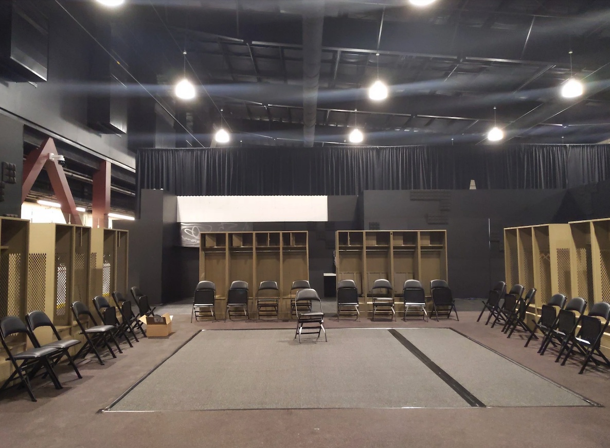 Problème, l'aménagement du vestiaire pour l'équipe adverse n'est pas encore prêt et le club a dû recourir à une solution provisoire dans un espace annexe. Voilà donc ce que les joueurs des Jets découvriront à leur arrivée. Remarquez que le vestiaire des Coyotes n'est lui pas non plus aux standards de la NHL, c'est l'image juste d'après.