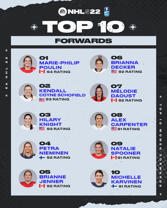 Les 10 joueuses les mieux notées dans NHL 22 27/01/2022 Follow SwissHabs Derniers articles Il y a 7 heures Ovechkin atteint les 1000 buts, mais Colorado gâche la fête Il y a 8 heures Sierre file en finale de Swiss League, La Chaux-de-Fonds en grand danger Il y a 9 heures Formation des équipes et joueurs indisponibles pour le match Zoug vs Davos Il y a 9 heures Formation des équipes et joueurs indisponibles pour le match Rapperswil vs Fribourg Il y a 12 heures Les Zoug Women à une victoire d’un premier sacre historique