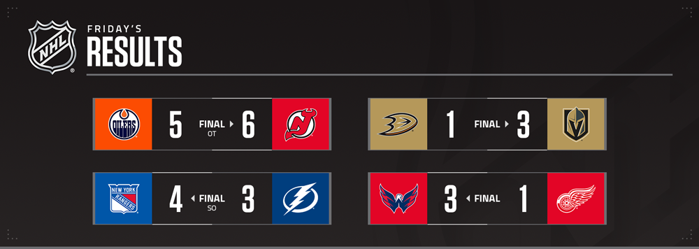 Hughes (no 1 en 2019) a également ouvert le score vendredi, suivi du capitaine des Oilers Connor McDavid (no 1 en 2015) et de son coéquipier Nico Hischier (no 1 en 2017). Ce n'est que la quatrième fois dans l'histoire de la LNH que chacun des trois premiers buts d'un match a été marqué par des choix de premier ordre. Les autres fois : 6 novembre 2021 (Taylor Hall, John Tavares et Auston Matthews), 8 décembre 2002 (Eric Lindros, Bryan Berard et Joe Thornton) et 9 novembre 1991 (Mike Modano, Bobby Smith et Mario Lemieux).