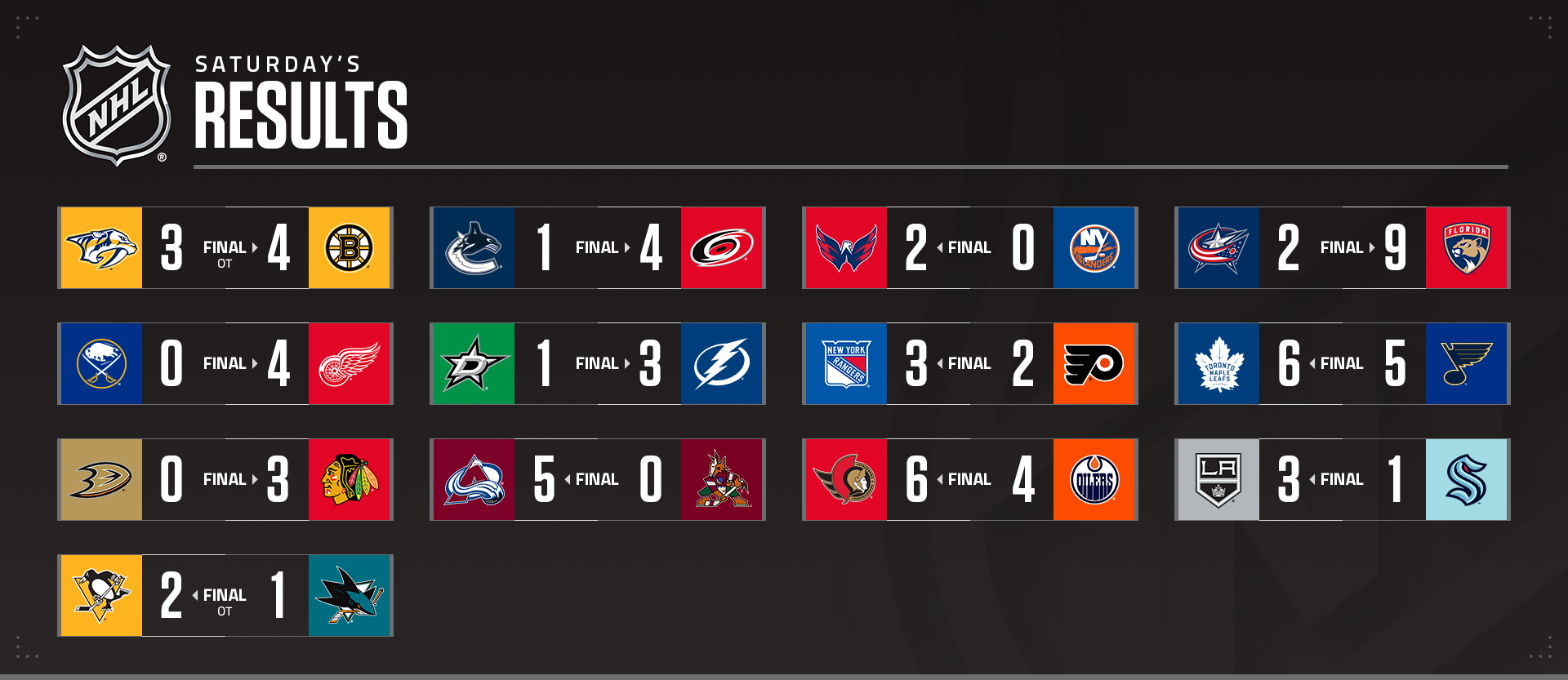 MacKenzie Weegar (1-3-4) était l'un des neuf patineurs de la Floride à avoir plusieurs points, alors que les Panthers (26-7-5, 57 points), leaders de la LNH, ont marqué neuf buts dans un match pour la deuxième fois cette saison (également le 30 décembre 2021 contre TBL) et pour la troisième fois dans l'histoire de la franchise. Seules deux autres équipes au cours des dix dernières années ont atteint cette marque deux fois en une seule saison : Tampa Bay (2x en 2019-20) et Calgary (2x en 2018-19).