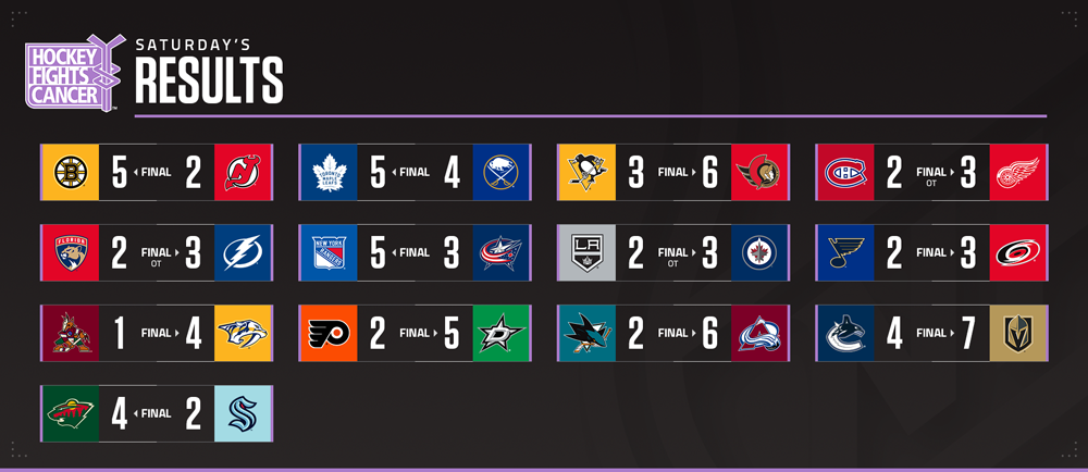 L'attaquant des Sénateurs Drake Batherson (2-2-4), le défenseur de l'Avalanche Samuel Girard (1-3-4) et le capitaine des Predators Roman Josi (2-2-4) ont chacun obtenu quatre points samedi :