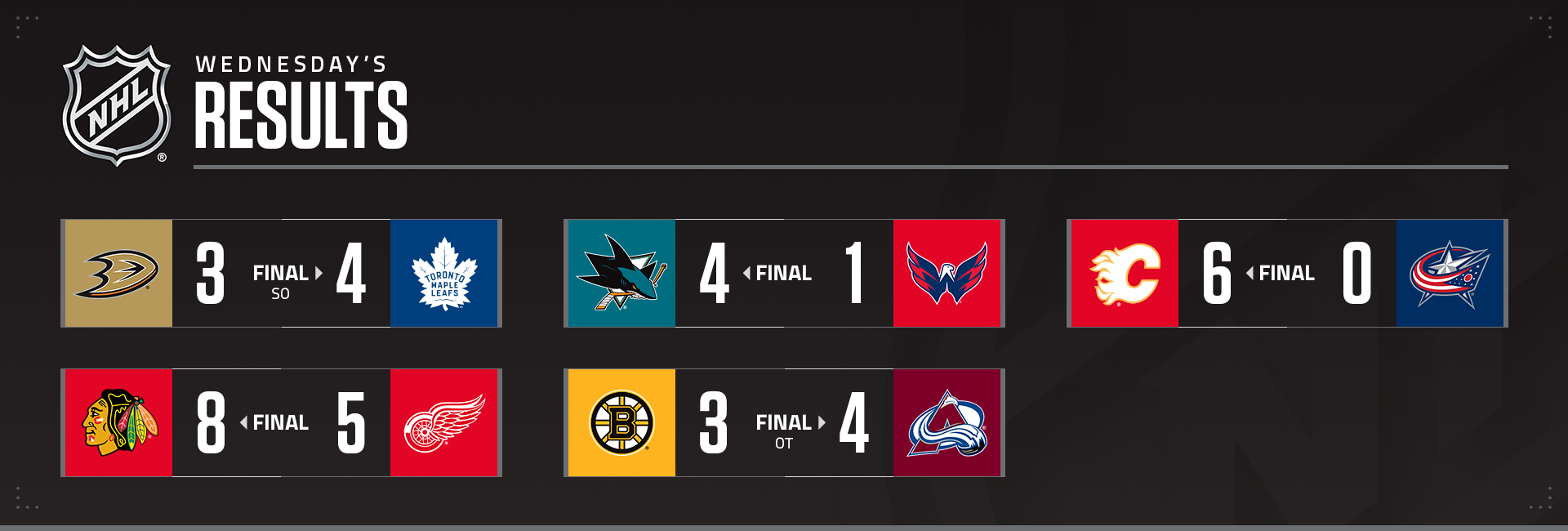 Avec 62 tirs au but mercredi, les Flames ont établi un nouveau record de franchise pour un seul match (saison régulière ou séries éliminatoires). Le total de tirs de Calgary est le plus élevé par une équipe dans un match de saison régulière depuis plus de 30 ans, lorsque Boston avait enregistré 73 tirs le 21 mars 1991.