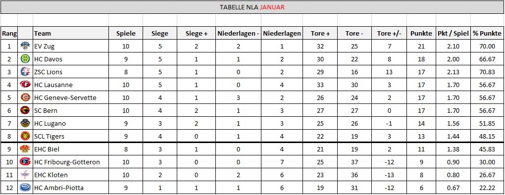 LNA : équipes les plus performantes au mois de janvier 29/01/2017 Réalisation Simon Mengelt Follow SwissHabs Derniers articles Il y a une heure Christian Dubé souhaite panacher les nationalités dans son contingent d'étrangers Il y a une heure Pittsburgh s’accroche et prolonge la série face à Philadelphie Il y a une heure Windsor domine Kitchener et s’adjuge l’acte 3 Il y a 9 heures Christian Kirsch à l’honneur en OHL après un début de finale de conférence solide Il y a 9 heures Le tableau des quarts de finale est connu aux championnats du monde U18