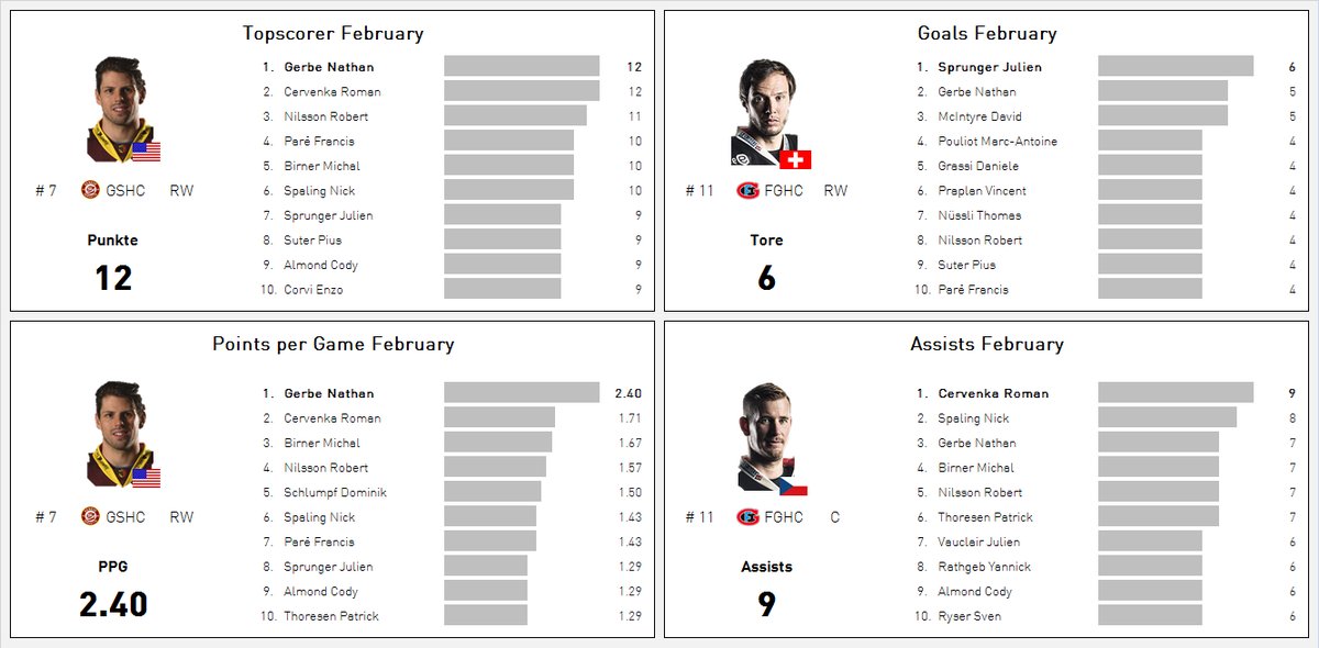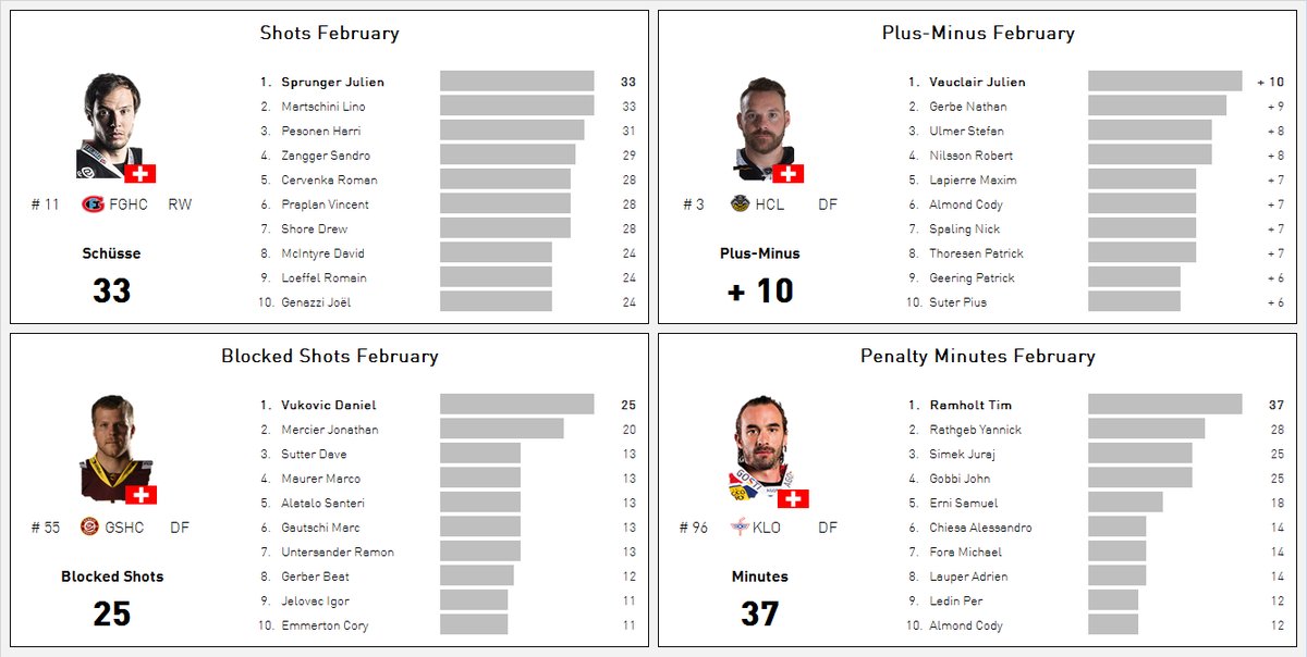 LNA : joueurs les plus performants au mois de février 27/02/2017 réalisation Simon Mengelt Follow SwissHabs Derniers articles Il y a 8 heures Entretien avec Tim Berni avant son départ pour Zurich Il y a 8 heures La Lettonie élimine les Etats-Unis aux Mondiaux U18 Il y a 9 heures Sorokin, Swayman et Vasilevskiy élus finalistes du Trophée Vézina Il y a 10 heures L’avenir de Jeremi Gerber totalement relancé après ses playoffs Il y a 10 heures Mondiaux U18 : la Suède fait tomber le Canada et file en demi-finales