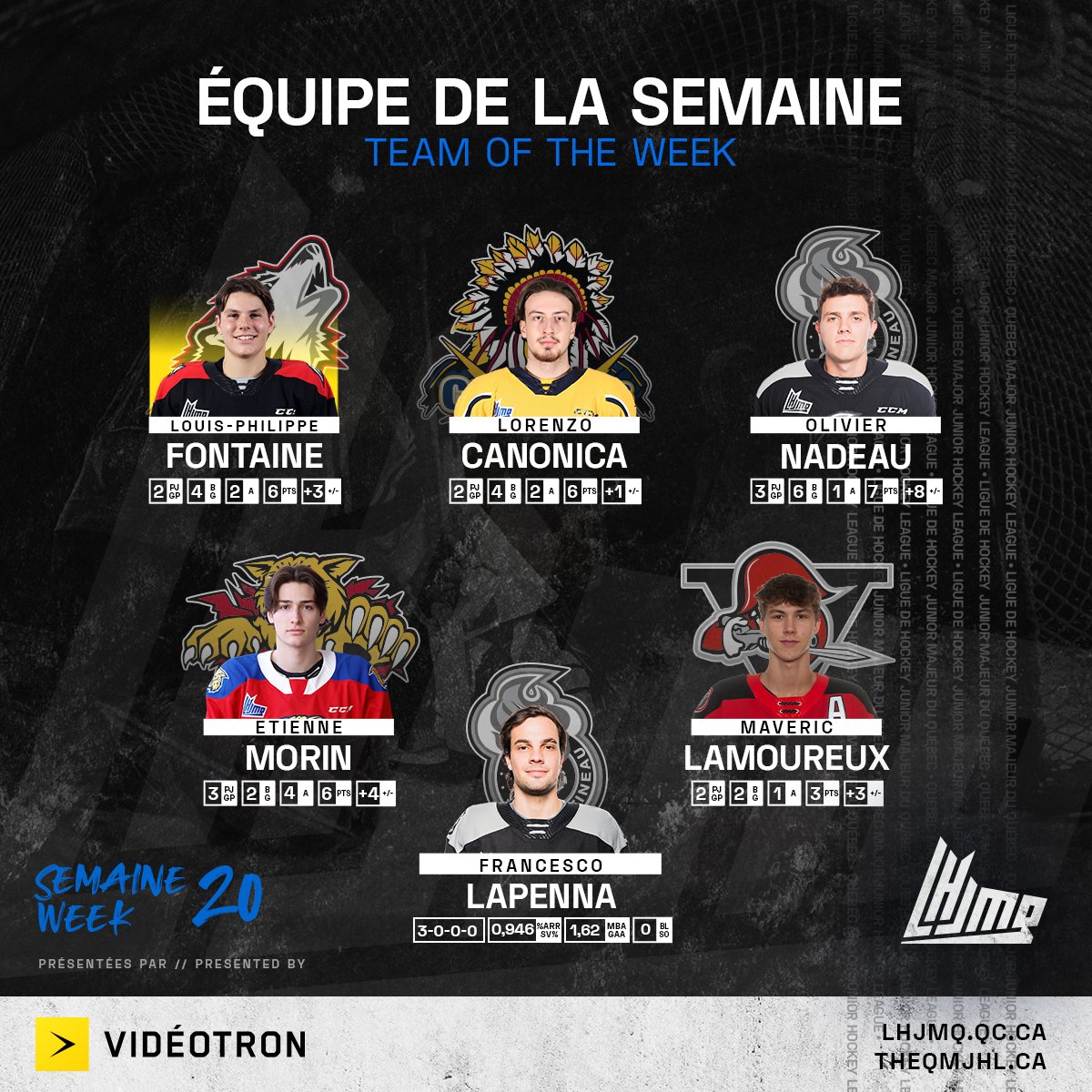 Lorenzo Canonica dans l'équipe de la semaine de LHJMQ 13/02/2023 Follow SwissHabs Derniers articles Il y a 6 heures Ludvig Johnson échange régulièrement avec sa franchise de NHL Il y a 7 heures EHC Coire : Björn Gerhard a une vision claire pour l'avenir de la Swiss League Il y a 8 heures Les autres faits à retenir de cette nuit de NHL et de celle à venir Il y a 8 heures Un nouveau record d'affluence pour un match féminin aux États-Unis Il y a 8 heures Lars Steiner et Guus Van der Kaaij trouvent le fond des filets