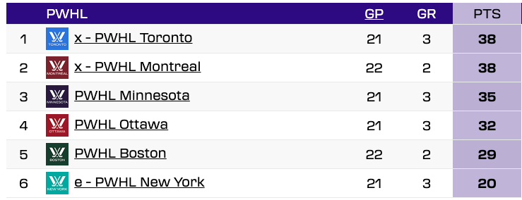 Et notamment pour la course aux play-offs avec les quatre premières équipes du classement qui seront qualifiées. À ce titre, Boston a perdu un match important 3-2 SO face à Ottawa, comptant maintenant 3 points de retard sur cette quatrième place justement occupée par Ottawa, avec un match en moins à jouer. Pas de point cette nuit pour Alina Mueller.