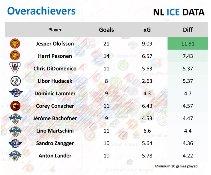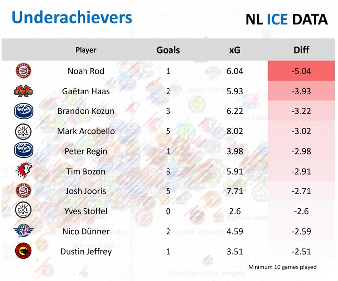 National League : joueurs qui ont surperformé ou sous-performé au niveau des buts marqués jusqu'ici