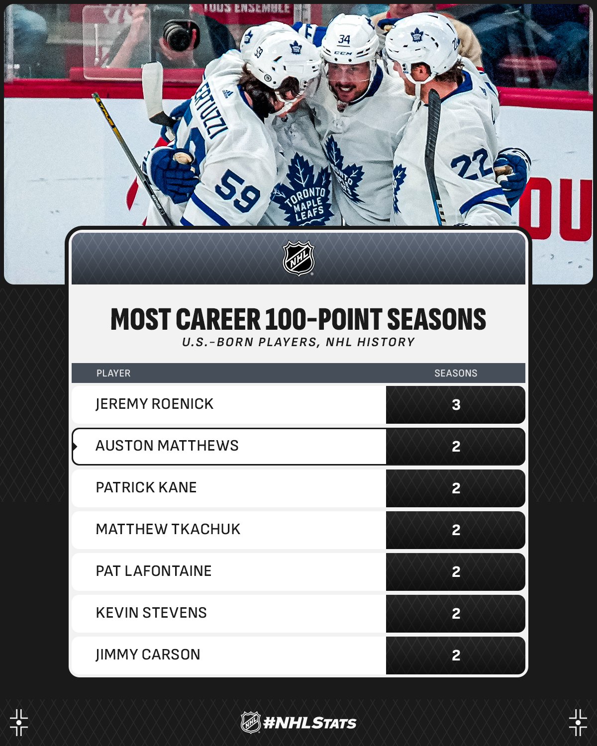 Plus de saisons à 100 points pour un joueur Américain 07/04/2024 Follow SwissHabs Derniers articles Il y a 42 minutes Trois nouveaux intronisés au Hall of Fame de Genève Il y a 2 heures Women's League : début des pré-play-offs, les play-out n’auront pas lieu Il y a 2 heures Les autres faits à retenir de cette nuit de NHL et de celle à venir Il y a 3 heures Connor McDavid atteint les 100 points pour une sixième saison consécutive Il y a 4 heures Benoît Groulx n'exclu pas de prolonger avec Zoug