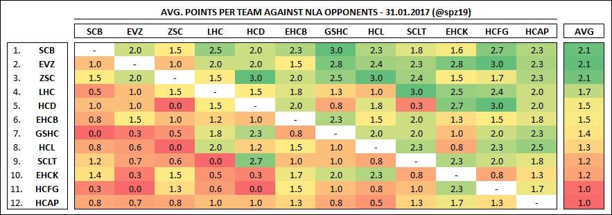Points réalisés par les clubs de LNA contre chacune des autres équipes 31/01/2017 toujours réalisé par @spz19 Follow SwissHabs Derniers articles Il y a 22 minutes Kaspars Daugaviņš en a sans doute terminé avec sa carrière en équipe lettone Il y a 2 heures Les autres faits à retenir de cette nuit de NHL et de celle à venir Il y a 3 heures Vegas arrache l’égalisation dans la série grâce à Theodore en prolongation Il y a 5 heures Christian Dubé souhaite panacher les nationalités dans son contingent d'étrangers Il y a 5 heures Pittsburgh s’accroche et prolonge la série face à Philadelphie