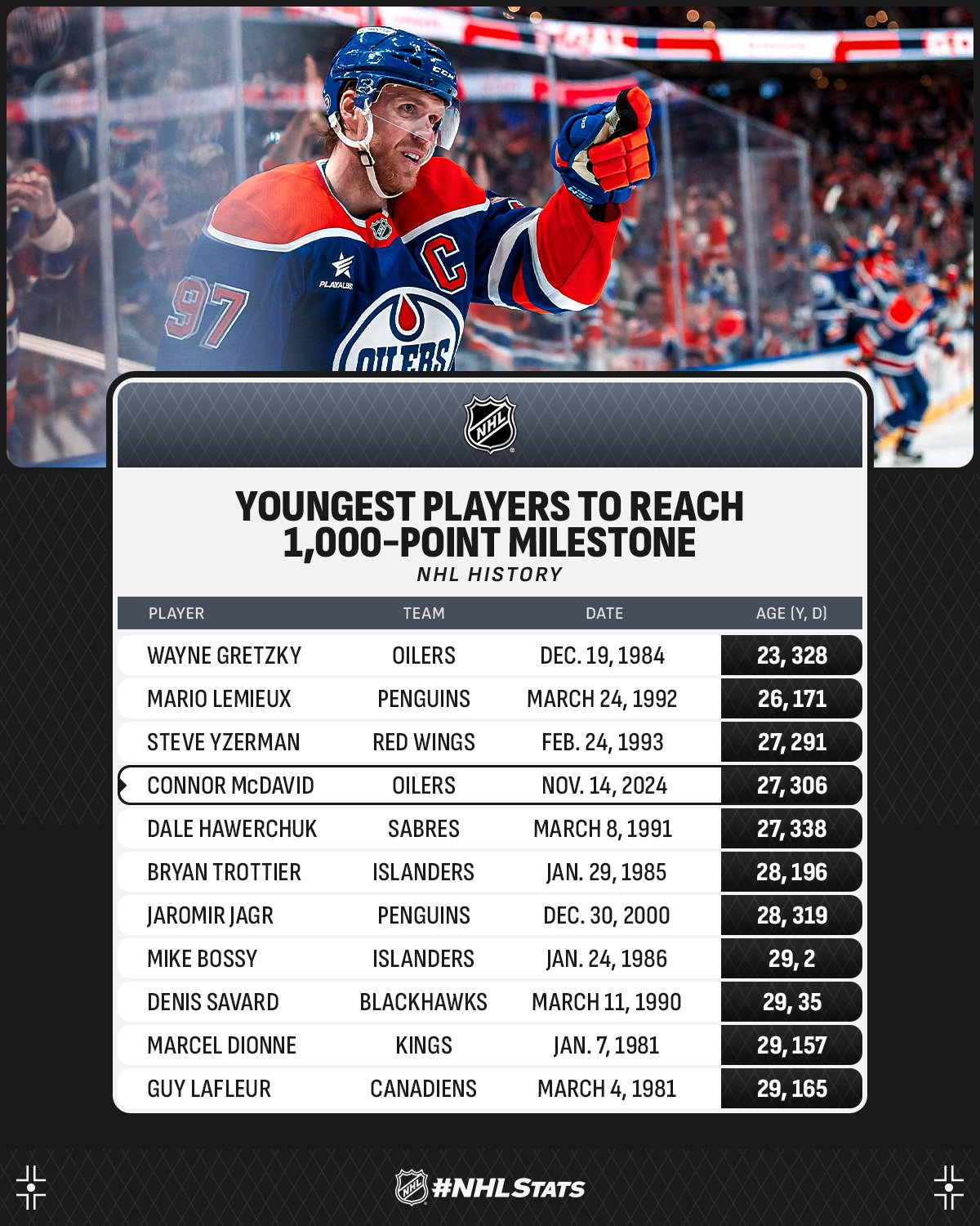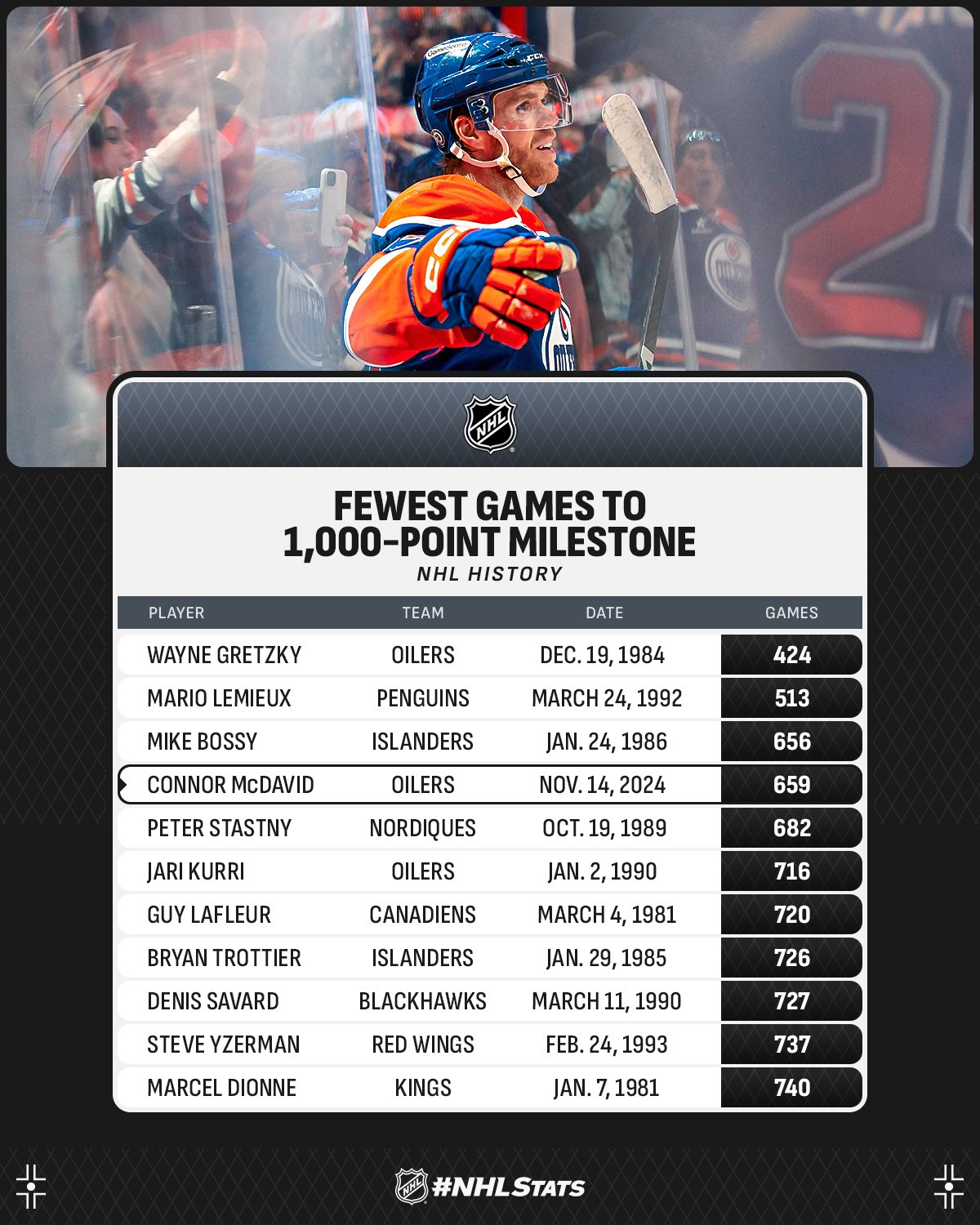 Quelques chiffres autour du 1'000e point de Connor McDavid 15/11/2024 Follow SwissHabs Derniers articles Il y a une heure Les autres faits à retenir de cette nuit de NHL et de celle à venir Il y a 3 heures Fribourg a pu profiter de la vente de feu de Jukurit Il y a 3 heures Un record pour les Stars de Dallas Il y a 4 heures Les Devils s'imposent mais notre trio suisse reste muet Il y a 4 heures Nashville actif sur le marché des échanges cette nuit en NHL