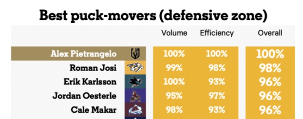 Elle se base sur les chiffres réels des matchs de la saison dernière avec l'efficacité dans les trois zones de la patinoire. C'est The Athletic qui s'y est collé (ici, paywall) dont voici la synthèse.