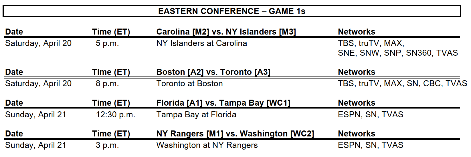 En voici quelques-uns connus à cette heure-ci, auxquels vient de s'ajouter un certain Nashville vs Canucks
