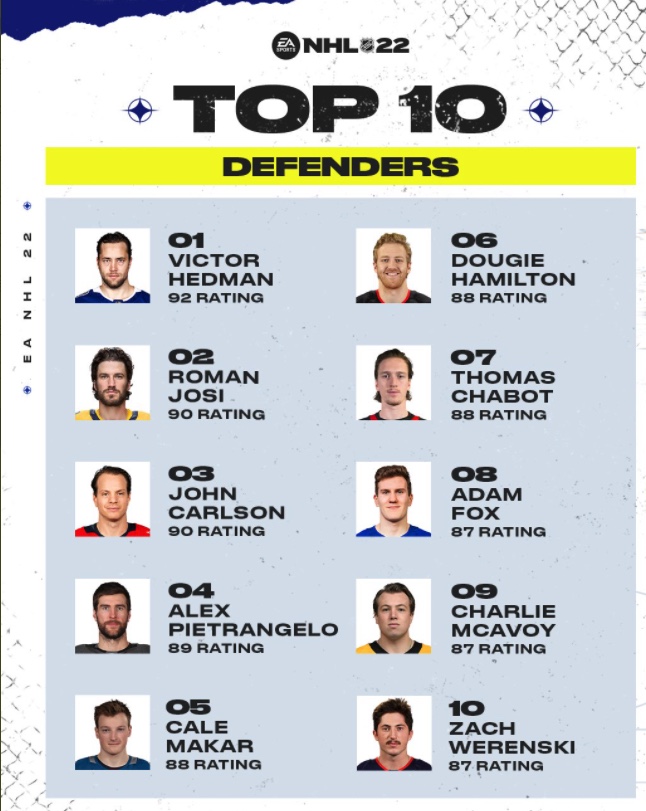Roman Josi très bien noté dans NHL 22 01/10/2021 Follow SwissHabs Derniers articles Il y a 2 heures Lugano va grandement renouveler ses étrangers Il y a 3 heures Cas Nemeth : le Tribunal du Sport de la Fédération rejette l’appel Il y a 4 heures Deux officialisations de contrat attendues du côté d'Ambri Il y a 4 heures Un avenir très incertain pour Denis Hollenstein Il y a 6 heures Plusieurs mouvements encore attendus autour du HC Bienne, mais Lucas Wallmark n'est pas concerné