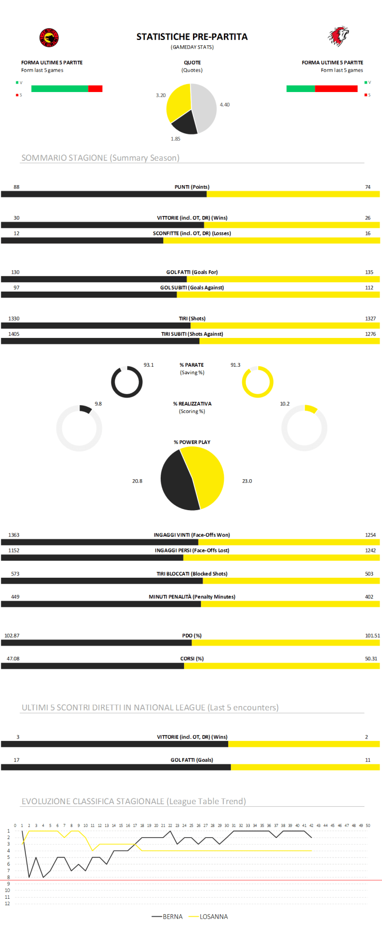 Statistiques d'avant-match Berne vs Lausanne 28/01/2017 Stats via Leading Sports, plus de détails ici Follow SwissHabs Derniers articles Il y a 17 minutes Pittsburgh s’accroche et prolonge la série face à Philadelphie Il y a 22 minutes Windsor domine Kitchener et s’adjuge l’acte 3 Il y a 8 heures Christian Kirsch à l’honneur en OHL après un début de finale de conférence solide Il y a 8 heures Le tableau des quarts de finale est connu aux championnats du monde U18 Il y a 9 heures Joueurs de NHL présents aux championnats du monde en Suisse (3)
