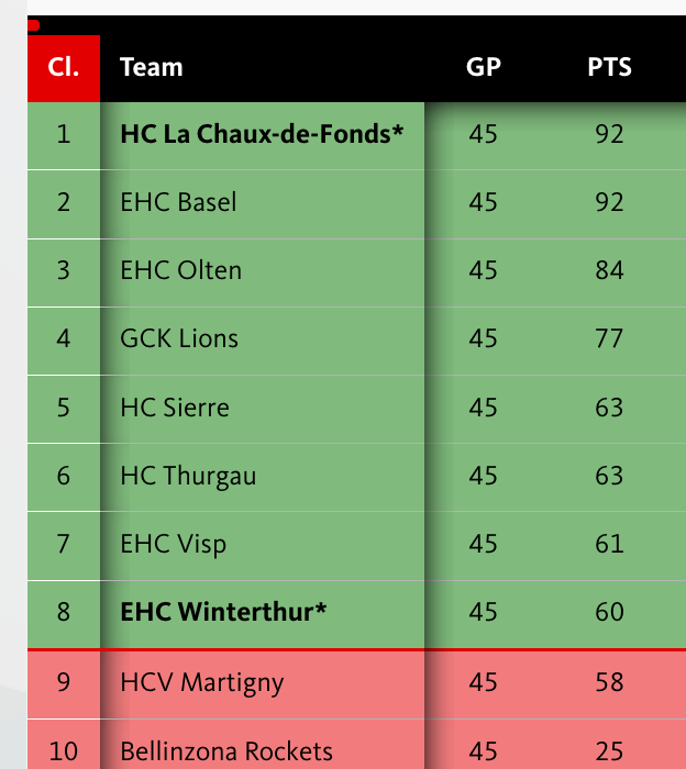 Martigny a perdu devant les Rockets et manque ainsi la qualification pour les séries finales, ce qui fait le bonheur de Winterthour qui est allé chercher les points nécessaire face à La Chaux-de-Fonds.