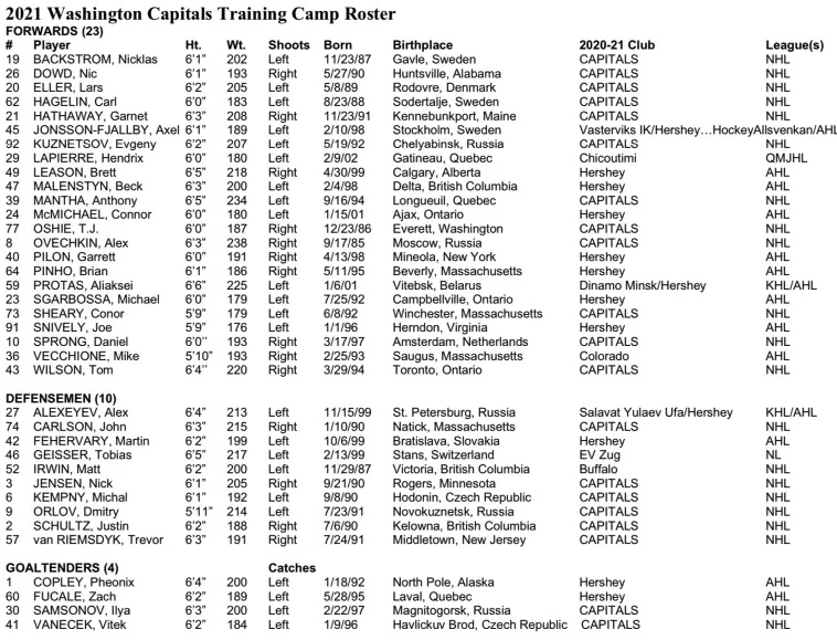 Les joueurs suivants ont été assignés aux Bears de Hershey : Kody Clark, Cody Franson, Shane Gersich (nécessite une dérogation), Lucas Johansen (nécessite une dérogation), Kale Kessy, Dylan McIlrath (nécessite une dérogation), Mason Morelli, Hunter Shepard, Riley Sutter, Eddie Wittchow. Bobby Nardella poursuivra sa rééducation à Hershey.