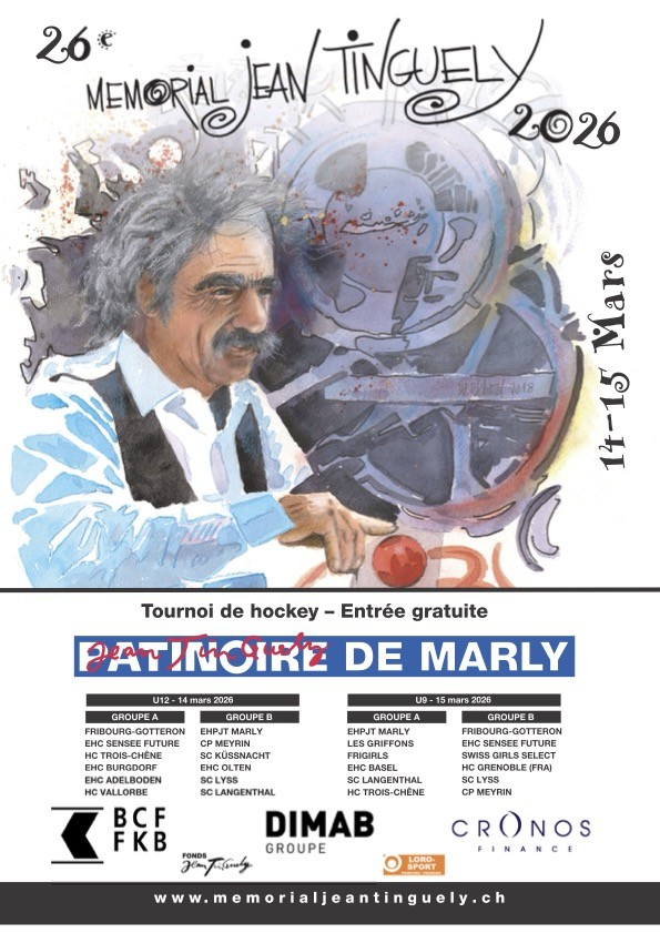 Ce week-end des 14 et 15 mars 2026, la Patinoire Jean-Tinguely de Marly retrouvera l’énergie et les sourires de la jeunesse avec la relance du tournoi « MEMORIAL JEAN TINGUELY », pour les catégories U12 et U9.
