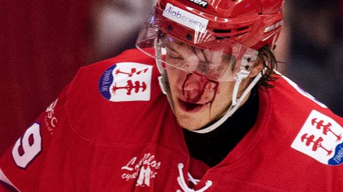L'ancien Bernois l'a en effet touché en plein visage ce qui lui a valu une fin de match prématurée et quelques points de sutures au nez et sur la joue. Il ne devrait apparement pas avoir d'autres séquelles (photos allehanda.se).