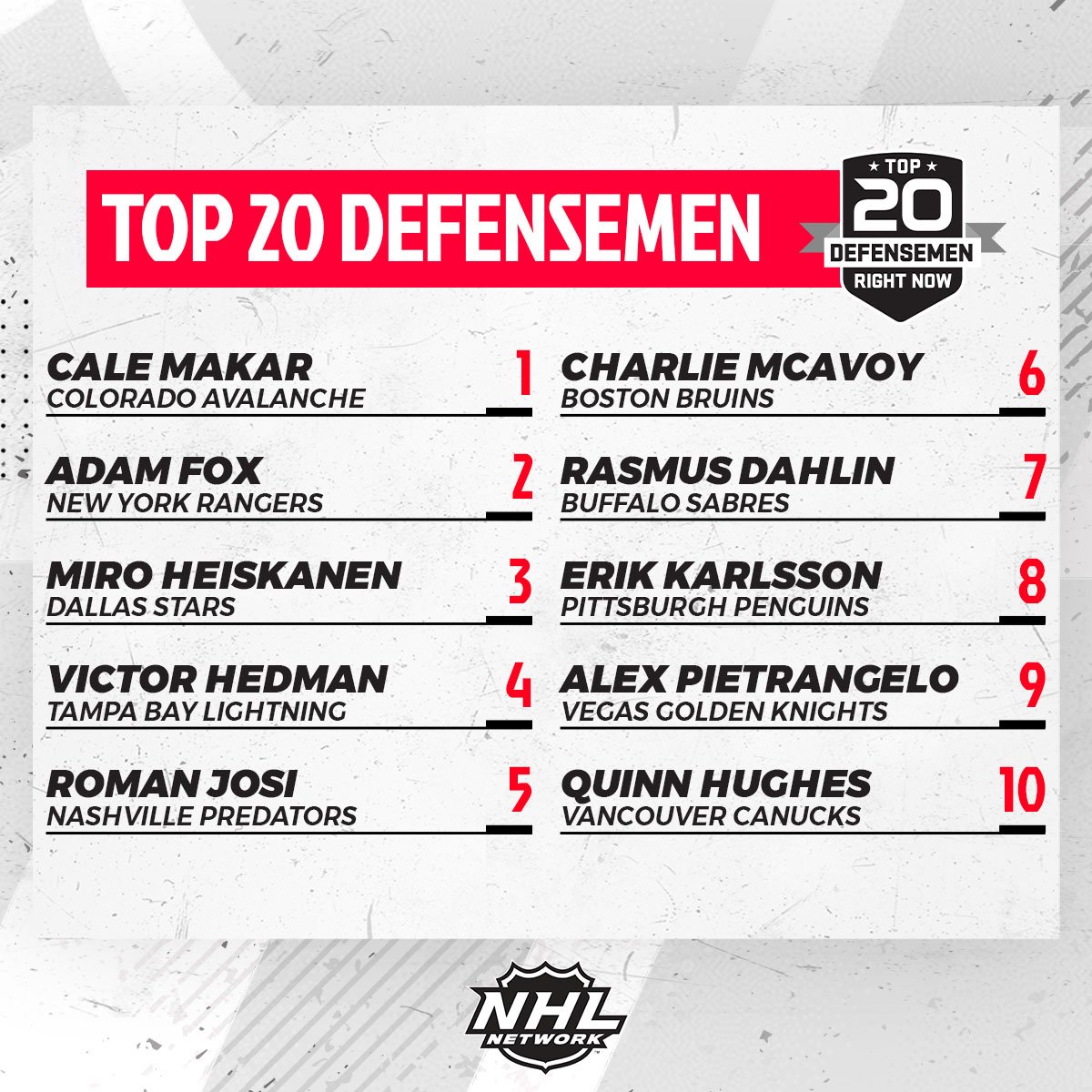 Top 20 des meilleurs défenseurs actuels de NHL